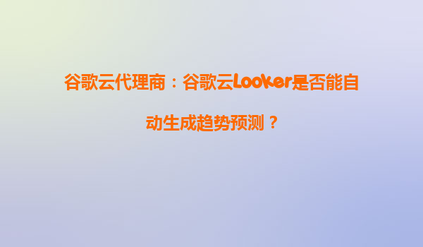 2025-09-26谷歌云代理商:谷歌云Looker是否能自動生成趨勢預(yù)測? 引言 在當(dāng)今數(shù)據(jù)驅(qū)動的商業(yè)環(huán)境中,企業(yè)越來越依賴數(shù)據(jù)分析工具來預(yù)測市場趨勢、優(yōu)化運營并提升決策效率。谷歌云的Looker作為...