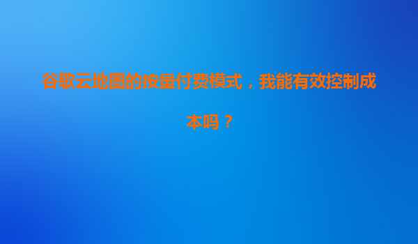 4008-020-360 以谷歌云地圖的按量付費(fèi)模式,我能有效控制成本嗎? 一、谷歌云地圖按量付費(fèi)模式的核心優(yōu)勢(shì) 谷歌云地圖服務(wù)(GoogleMapsPlatform)采用按量付費(fèi)(Pay-As-You-Go)的靈活計(jì)費(fèi)模式,其核...