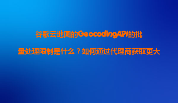 2025-11-09谷歌云地圖GeocodingAPI的批量處理限制解析 谷歌云地圖的GeocodingAPI是開發(fā)者廣泛使用的地址解析服務,能將物理地址轉換為經緯度坐標(正向地理編碼),或反向將坐標轉換為可讀地址。對于批量處理任務,谷歌...