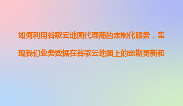 2025-11-08谷歌云地圖代理商定制化服務概述 谷歌云地圖代理商提供的定制化服務能夠幫助企業(yè)在谷歌地圖上實現(xiàn)業(yè)務數(shù)據(jù)的定期更新與動態(tài)展示。通過靈活的地理空間數(shù)據(jù)集成、可視化工具以及自動化處理流程,企業(yè)可高效構建專屬地...