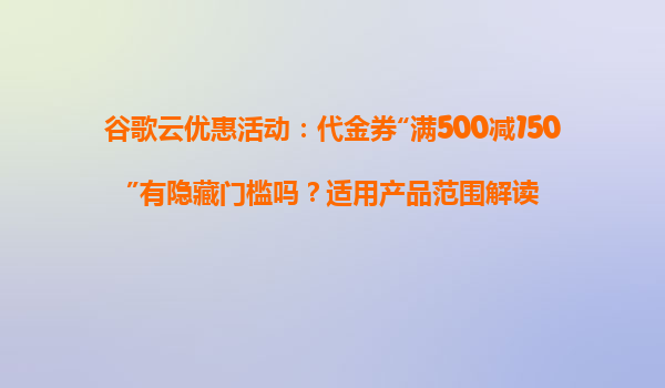 2025-04-03谷歌云代金券“滿500減150”活動解析與產(chǎn)品優(yōu)勢解讀 優(yōu)惠活動核心規(guī)則透明解讀 谷歌云近期推出的“滿500減150”代金券活動引發(fā)廣泛關(guān)注,經(jīng)官方渠道確認,該活動無任何隱藏...