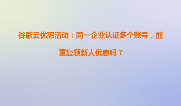 4008-020-360 谷歌云優(yōu)惠活動解析:企業(yè)認證多賬號能否重復領(lǐng)取新人優(yōu)惠? 一、谷歌云新人優(yōu)惠活動規(guī)則解讀 谷歌云為吸引新用戶推出的"新人優(yōu)惠"(如300美元免費試用額度)明確規(guī)定,每個用戶或企業(yè)主體僅...