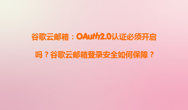 2025-04-03谷歌云郵箱:OAuth2.0認(rèn)證的必要性與安全機(jī)制解析 一、OAuth2.0認(rèn)證是否必須開啟? OAuth2.0作為現(xiàn)代身份驗(yàn)證的核心協(xié)議,在谷歌云郵箱中扮演關(guān)鍵角色。雖然谷歌并未強(qiáng)制要求所有場景必須開啟O...
