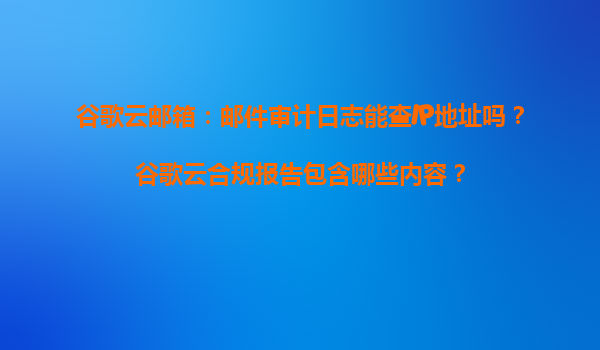 2025-04-03谷歌云郵箱郵件審計日志與合規(guī)報告解析 一、郵件審計日志能否查詢IP地址? 1.1審計日志的核心功能 谷歌云郵箱的郵件審計日志(AuditLog)是企業(yè)版Workspace的核心安全功能,可記錄包括郵件發(fā)送、接收...