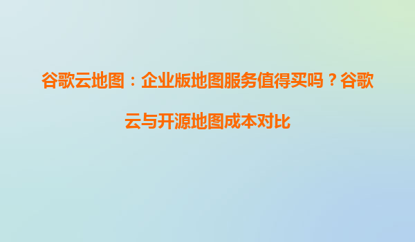 2025-04-03谷歌云地圖企業(yè)版vs開源地圖:成本與價值的深度分析 一、谷歌云地圖企業(yè)版的核心優(yōu)勢 數(shù)據(jù)質(zhì)量行業(yè)標(biāo)桿:覆蓋200+國家/地區(qū),每月更新超100億條數(shù)據(jù),衛(wèi)星影像分辨率達(dá)0.5米級 全場景AP...