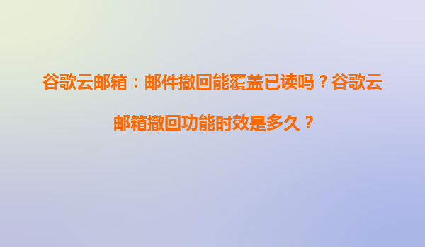 2025-04-03谷歌云郵箱郵件撤回功能詳解:時(shí)效性與已讀覆蓋分析 一、谷歌云郵箱郵件撤回功能概述 谷歌云郵箱(Gmail)的郵件撤回功能(即"撤銷發(fā)送")是用戶發(fā)送郵件后的一項(xiàng)補(bǔ)救機(jī)制,允許在特定時(shí)間窗口內(nèi)...