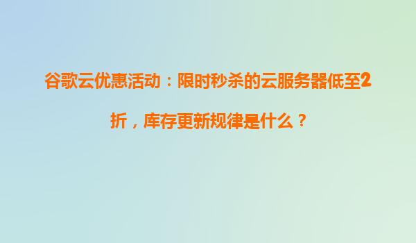 2025-04-03谷歌云優(yōu)惠活動(dòng)解析:限時(shí)秒殺2折云服務(wù)器與庫(kù)存更新規(guī)律 一、谷歌云的核心優(yōu)勢(shì) 1.1全球領(lǐng)先的基礎(chǔ)設(shè)施 谷歌云在全球擁有35個(gè)區(qū)域和106個(gè)可用區(qū),覆蓋200+國(guó)家/地區(qū),支持企業(yè)構(gòu)建低延遲、高可用的全...