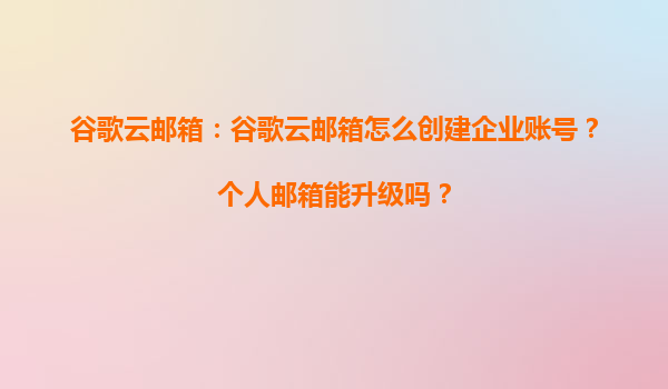 2025-04-02谷歌云郵箱:創(chuàng)建企業(yè)賬號(hào)與個(gè)人郵箱升級(jí)指南 一、如何創(chuàng)建谷歌云企業(yè)賬號(hào)? 谷歌云企業(yè)郵箱(GoogleWorkspace)為企業(yè)提供專(zhuān)業(yè)化的郵箱服務(wù),創(chuàng)建流程如下: 注冊(cè)谷歌云企業(yè)版:訪問(wèn)Google...