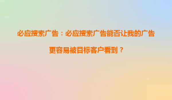 2025-09-16標(biāo)題:利用必應(yīng)搜索引擎競(jìng)價(jià)推廣優(yōu)勢(shì)精準(zhǔn)提升企業(yè)營銷效果 一、必應(yīng)搜索引擎的市場(chǎng)定位與用戶價(jià)值 必應(yīng)(Bing)作為全球第二大搜索引擎,在美國市場(chǎng)份額超過30%,并與Windows系統(tǒng)深度集成。其用戶群體以...