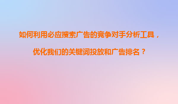 2025-11-07必應(yīng)搜索引擎競(jìng)價(jià)推廣的優(yōu)勢(shì)及標(biāo)題優(yōu)化策略分析 一、必應(yīng)競(jìng)價(jià)推廣的核心優(yōu)勢(shì) 必應(yīng)作為全球第二大搜索引擎,其競(jìng)價(jià)推廣體系具有顯著差異化優(yōu)勢(shì):首先,BingAds覆蓋Windows系統(tǒng)默認(rèn)搜索及Office產(chǎn)品生態(tài),觸...