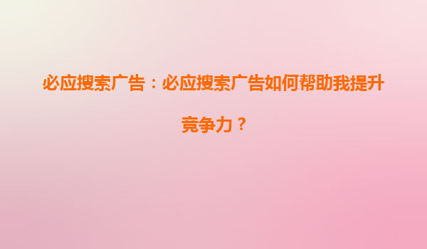 4008-020-360 必應(yīng)搜索引擎競價推廣的優(yōu)勢及標(biāo)題內(nèi)容分析 一、必應(yīng)搜索引擎的市場定位與用戶群體 必應(yīng)(Bing)作為微軟旗下的搜索引擎,雖然在市場份額上不及谷歌,但在某些...