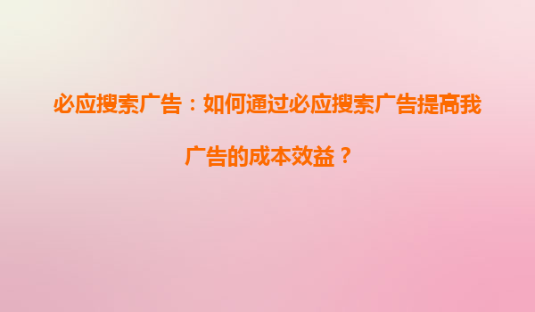 2025-09-04必應(yīng)搜索引擎競價推廣優(yōu)勢分析與標(biāo)題優(yōu)化策略 一、必應(yīng)競價推廣的核心優(yōu)勢 必應(yīng)(Bing)作為全球第二大搜索引擎,雖然在市場份額上略遜于谷歌,但其獨特的用戶群體和精準(zhǔn)的廣告投放系統(tǒng)為廣告主提...