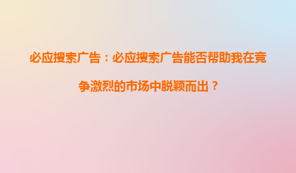 2025-09-02必應(yīng)搜索引擎競價推廣核心優(yōu)勢與標題內(nèi)容深度解析 一、必應(yīng)競價推廣的市場定位優(yōu)勢 必應(yīng)搜索作為全球第二大搜索引擎,尤其在歐美高端市場占有率超過30%,其競價推廣系統(tǒng)為企業(yè)提供了精準觸達高消...
