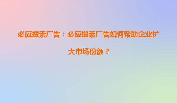 4008-020-360 必應(yīng)搜索引擎競價推廣的優(yōu)勢及標題內(nèi)容分析 一、必應(yīng)搜索引擎的市場定位與用戶群體 必應(yīng)(Bing)作為微軟旗下的搜索引擎,在全球范圍內(nèi)擁有穩(wěn)定的市場份額,尤其在歐美地區(qū)用戶基礎(chǔ)龐大。其用戶群體以企業(yè)決...
