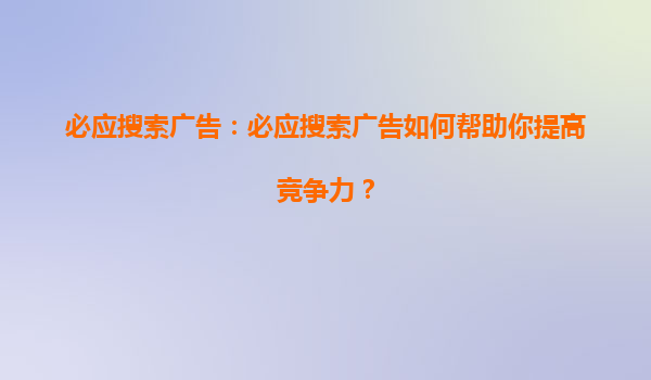 2025-08-28必應(yīng)搜索引擎競(jìng)價(jià)推廣的優(yōu)勢(shì)與標(biāo)題內(nèi)容深度解析 一、必應(yīng)搜索引擎的市場(chǎng)定位與用戶價(jià)值 必應(yīng)(Bing)作為微軟旗下的核心搜索引擎,在全球市場(chǎng)份額中占據(jù)重要地位,尤其在北美和歐洲企業(yè)級(jí)用戶中滲透率較高...