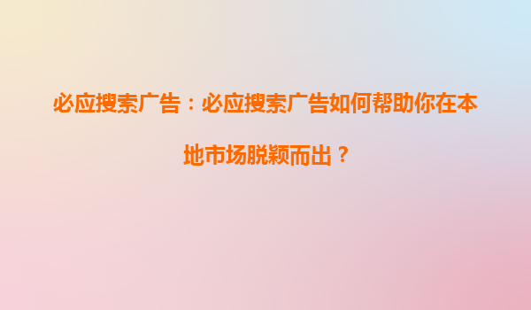 2025-08-27必應(yīng)搜索引擎競價推廣的核心優(yōu)勢與標(biāo)題內(nèi)容深度解析 一、必應(yīng)競價推廣的精準流量優(yōu)勢 必應(yīng)搜索作為全球第二大英文搜索引擎,覆蓋歐美高端商業(yè)用戶群體。其競價廣告系統(tǒng)通過關(guān)鍵詞定位技術(shù),可將廣告精準投...