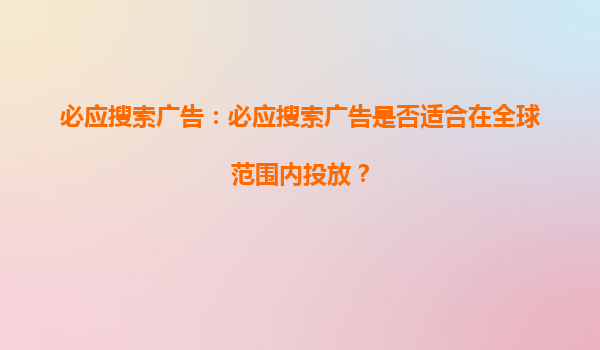 2025-08-26必應(yīng)搜索引擎競(jìng)價(jià)推廣優(yōu)勢(shì)及標(biāo)題內(nèi)容深度解析 一、必應(yīng)搜索的市場(chǎng)定位與用戶價(jià)值 作為微軟旗下核心搜索引擎,必應(yīng)(Bing)在全球市場(chǎng)份額穩(wěn)定前五,尤其在北美和歐洲企業(yè)用戶中滲透率較高。其用戶群體具有...