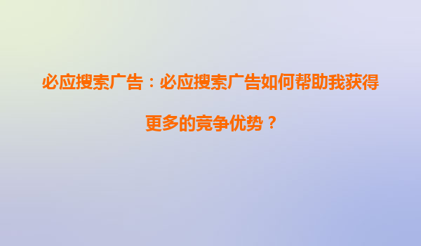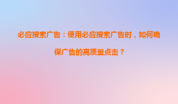2025-08-24必應(yīng)搜索引擎競價推廣的核心優(yōu)勢與標題內(nèi)容深度解析 一、必應(yīng)競價推廣的流量質(zhì)量優(yōu)勢 作為微軟旗下核心搜索引擎,必應(yīng)(Bing)在全球市場份額持續(xù)增長,尤其在北美和歐洲企業(yè)用戶群體中滲透率高達30%以上。其...
