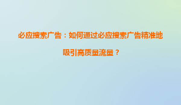 必應搜索引擎競價推廣優勢及標題內容深度解析 一、必應搜索的市場定位與用戶群體分析 必應(Bing)作為微軟旗下的核心搜索引擎,在全球市場中占據重要地位,尤其在歐美地區擁有穩定的...