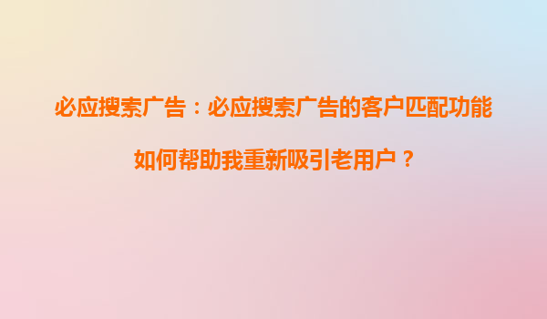 2025-11-03必應(yīng)搜索引擎競價(jià)推廣的優(yōu)勢與標(biāo)題內(nèi)容分析 必應(yīng)搜索的市場定位及用戶覆蓋面 必應(yīng)搜索引擎作為微軟旗下的核心產(chǎn)品,在全球搜索引擎市場占據(jù)重要地位,尤其在歐美發(fā)達(dá)國家擁有穩(wěn)定的用戶群體。數(shù)據(jù)顯示,必應(yīng)在P...