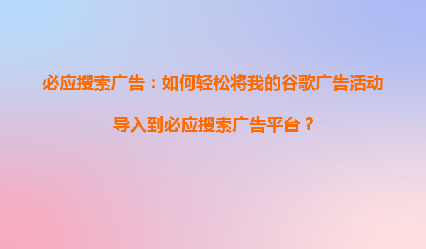 2025-11-01必應(yīng)搜索引擎競(jìng)價(jià)推廣優(yōu)勢(shì)及標(biāo)題內(nèi)容分析 1.標(biāo)題的作用與意義 標(biāo)題是廣告投放的核心元素之一,直接影響著廣告的點(diǎn)擊率和轉(zhuǎn)化率。在必應(yīng)搜索引擎競(jìng)價(jià)推廣中,一個(gè)優(yōu)質(zhì)的標(biāo)題需要具備吸引力、相關(guān)性和精準(zhǔn)性。它不僅...