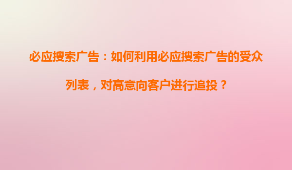 2025-10-31標(biāo)題解析:必應(yīng)搜索引擎競(jìng)價(jià)推廣的核心競(jìng)爭(zhēng)力 本文標(biāo)題直指“必應(yīng)搜索引擎競(jìng)價(jià)推廣優(yōu)勢(shì)”,暗示將圍繞其技術(shù)特點(diǎn)、市場(chǎng)價(jià)值及投放策略展開(kāi)分析。標(biāo)題明確包含三個(gè)關(guān)鍵信息:平臺(tái)限定(必應(yīng))、推廣形式(競(jìng)...