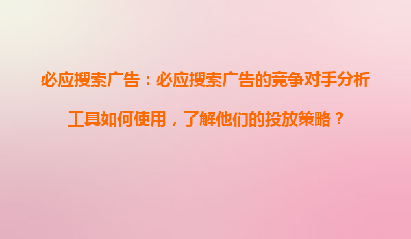 2025-10-31必應(yīng)搜索引擎競(jìng)價(jià)推廣優(yōu)勢(shì)與標(biāo)題內(nèi)容分析 一、必應(yīng)搜索引擎的市場(chǎng)定位及用戶群體 必應(yīng)(Bing)作為微軟旗下的搜索引擎,盡管在全球市場(chǎng)份額上不及谷歌,但在部分區(qū)域(如北美)仍占據(jù)重...
