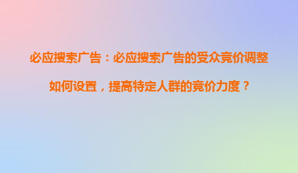 2025-10-29必應(yīng)搜索引擎競價推廣的優(yōu)勢及標(biāo)題內(nèi)容深度解析 一、必應(yīng)競價推廣的精準(zhǔn)流量優(yōu)勢 必應(yīng)搜索作為全球第二大搜索引擎,覆蓋歐美高消費(fèi)市場用戶群體。其競價廣告系統(tǒng)通過關(guān)鍵詞定位技術(shù),可實現(xiàn):1)基于用戶搜索意圖的...