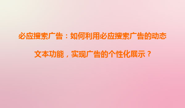 2025-10-29必應(yīng)搜索引擎競價推廣的核心優(yōu)勢與標(biāo)題內(nèi)容深度解析 一、必應(yīng)競價推廣的精準(zhǔn)流量優(yōu)勢 必應(yīng)搜索作為微軟旗下核心產(chǎn)品,在全球商務(wù)及高端用戶市場占據(jù)顯著份額。其競價推廣系統(tǒng)提供高度精準(zhǔn)的流量定位能...
