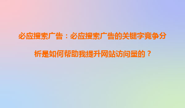2025-10-25必應(yīng)搜索引擎競價(jià)推廣的全面優(yōu)勢與標(biāo)題內(nèi)容深度解析 一、必應(yīng)競價(jià)推廣的核心競爭優(yōu)勢 必應(yīng)搜索引擎作為微軟旗下的重要產(chǎn)品,在全球搜索市場占據(jù)重要地位。其競價(jià)推廣服務(wù)具有獨(dú)特的競爭優(yōu)勢:首先,必應(yīng)用...