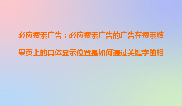 2025-10-23必應(yīng)搜索引擎競(jìng)價(jià)推廣的核心優(yōu)勢(shì)與標(biāo)題價(jià)值解析 一、必應(yīng)競(jìng)價(jià)推廣的精準(zhǔn)流量?jī)?yōu)勢(shì) 必應(yīng)搜索引擎作為微軟生態(tài)的核心入口,占據(jù)全球桌面搜索市場(chǎng)20%以上份額,其用戶群體具有高學(xué)歷、高收入特征。競(jìng)價(jià)推廣通過(guò)...