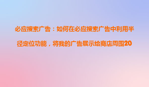 2025-10-23必應(yīng)搜索引擎競價推廣優(yōu)勢與標題優(yōu)化分析 一、必應(yīng)搜索引擎的市場定位與用戶特點 必應(yīng)搜索引擎作為全球第二大搜索引擎,其在歐美市場占有率超過20%,尤其在企業(yè)級用戶和高端消費群體中具有顯著優(yōu)勢。必應(yīng)用...