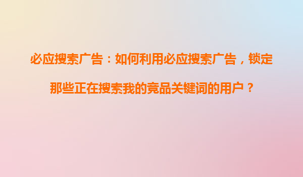 2025-10-19必應(yīng)搜索引擎競(jìng)價(jià)推廣的核心優(yōu)勢(shì)與標(biāo)題內(nèi)容深度解析 一、必應(yīng)競(jìng)價(jià)推廣的精準(zhǔn)流量?jī)?yōu)勢(shì) 作為微軟旗下搜索引擎,必應(yīng)覆蓋全球高端用戶群體。其競(jìng)價(jià)廣告系統(tǒng)通過微軟賬號(hào)體系可獲得精準(zhǔn)用戶畫像,支持職業(yè)、收...