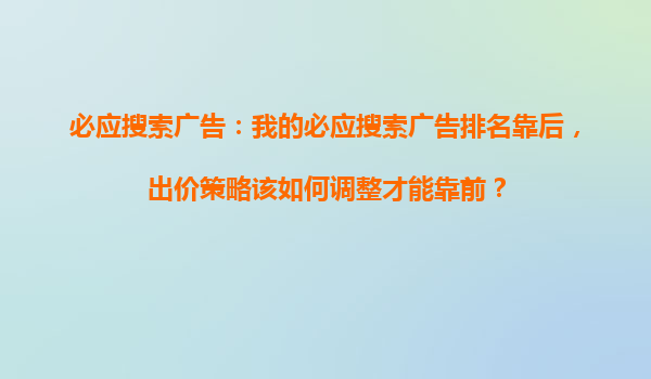 必應搜索引擎競價推廣的優(yōu)勢分析與標題內容解讀 一、必應搜索引擎的市場定位與價值 必應(Bing)作為微軟旗下的核心搜索引擎,在全球搜索市場占據(jù)重要地位,尤其在歐美商業(yè)用戶中滲透率超過30%。其用戶群體以...