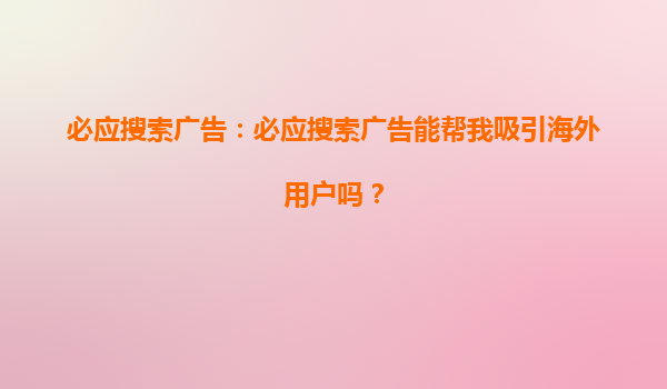 2025-10-01必應(yīng)搜索引擎競(jìng)價(jià)推廣優(yōu)勢(shì)及標(biāo)題內(nèi)容深度解析 一、必應(yīng)競(jìng)價(jià)推廣的核心優(yōu)勢(shì) 必應(yīng)搜索引擎作為全球第二大英文搜索平臺(tái),其競(jìng)價(jià)推廣系統(tǒng)具備獨(dú)特競(jìng)爭(zhēng)力。首先,必應(yīng)用戶群體以高學(xué)歷、高收入人群為主,廣告投...