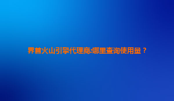 界首火山引擎代理商:如何查詢(xún)使用量及平臺(tái)優(yōu)勢(shì)解析