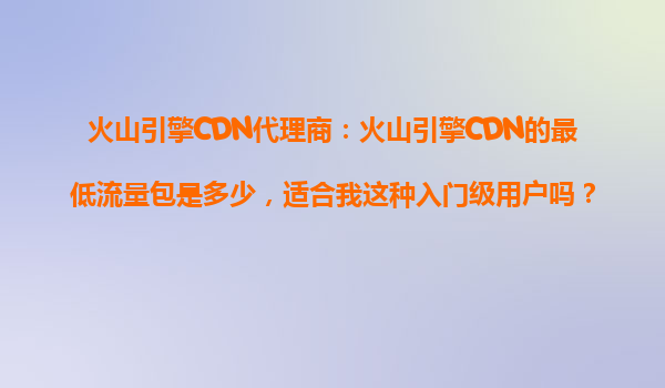 火山引擎cdn代理商解析:最低流量包與入門級用戶適配指南
