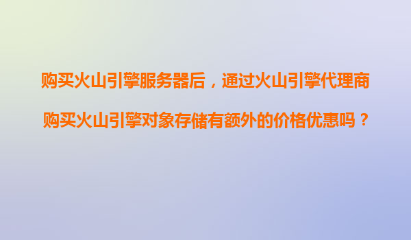 2025-11-15火山引擎代理商新用戶福利:購服務(wù)器贈對象存儲,雙贏選擇! 一、新用戶專享:購服務(wù)器送對象存儲免費容量 當(dāng)前,部分火山引擎代理商為吸引新用戶,確實推出了"購買云服務(wù)器即贈送對象存儲免...