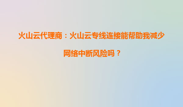 2025-09-19火山云代理商:火山云專線連接能幫助我減少網(wǎng)絡(luò)中斷風(fēng)險(xiǎn)嗎? 一、企業(yè)面臨的網(wǎng)絡(luò)中斷風(fēng)險(xiǎn)挑戰(zhàn) 在數(shù)字化時(shí)代,網(wǎng)絡(luò)穩(wěn)定性直接關(guān)系到企業(yè)核心業(yè)務(wù)的連續(xù)性。無(wú)論是金融交易、遠(yuǎn)程辦公還是...