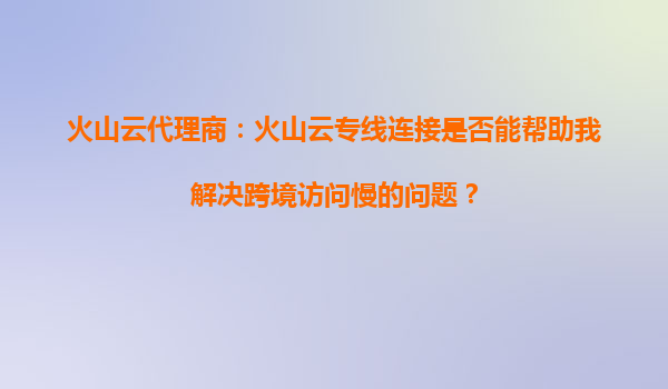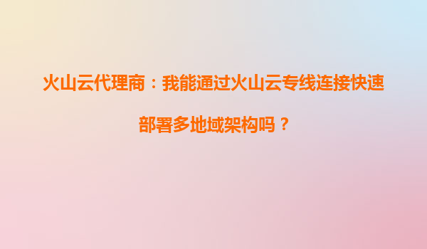 2025-09-19火山云代理商:我能通過(guò)火山云專線連接快速部署多地域架構(gòu)嗎?一、火山云專線的核心優(yōu)勢(shì)...