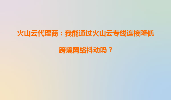 2025-09-18火山云代理商的跨境網(wǎng)絡(luò)優(yōu)化方案 在全球化的商業(yè)環(huán)境下,企業(yè)對于跨境網(wǎng)絡(luò)的穩(wěn)定性需求日益增長。作為火山云的代理商,我們深知網(wǎng)絡(luò)抖動對企業(yè)業(yè)務(wù)的影響,因此特別推薦火山云專線連接服務(wù),為企業(yè)提供穩(wěn)定高效的跨...