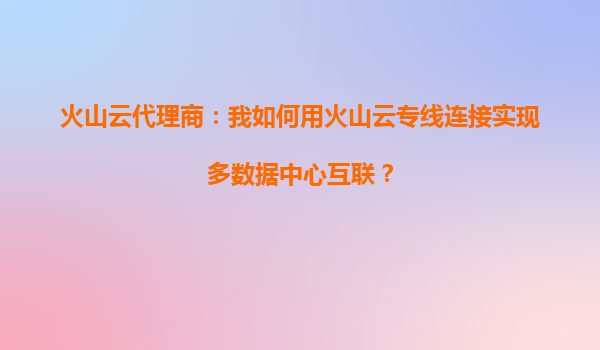 2025-09-18火山云代理商:如何利用火山云專線實現(xiàn)多數(shù)據(jù)中心互聯(lián) 在數(shù)字化時代,企業(yè)數(shù)據(jù)中心的互聯(lián)互通已成為業(yè)務(wù)連續(xù)性和高效運營的關(guān)鍵。火山云專線服務(wù)為企業(yè)提供了安全、穩(wěn)定、高效的多數(shù)據(jù)中心互聯(lián)解決方案。本文將...
