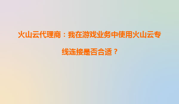 2025-09-18火山云代理商解析:游戲業(yè)務(wù)使用火山云專線連接的合適性與優(yōu)勢 一、游戲行業(yè)對網(wǎng)絡(luò)連接的特定需求 隨著全球游戲市場的持續(xù)擴張,玩家對游戲的實時性、穩(wěn)定性和安全性要求日益提高。多...