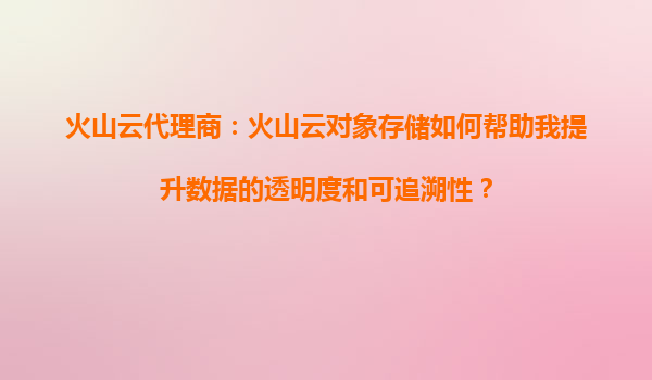 2025-09-18火山云代理商:火山云對象存儲如何幫助我提升數(shù)據(jù)的透明度和可追溯性? 一、火山引擎對象存儲的核心價值與優(yōu)勢 火山引擎的火山云對象存儲(TOS)是面向企業(yè)級的云原生存儲服務(wù),其核心優(yōu)勢在于提供高可靠、...