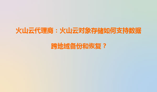 2025-09-17火山云對(duì)象存儲(chǔ)如何支持?jǐn)?shù)據(jù)跨地域備份和恢復(fù) 一、數(shù)據(jù)跨地域備份的核心需求 在數(shù)字化時(shí)代,企業(yè)數(shù)據(jù)已成為核心資產(chǎn)。為確保業(yè)務(wù)連續(xù)性并滿足合規(guī)要求,跨地域備份成為剛需: ...