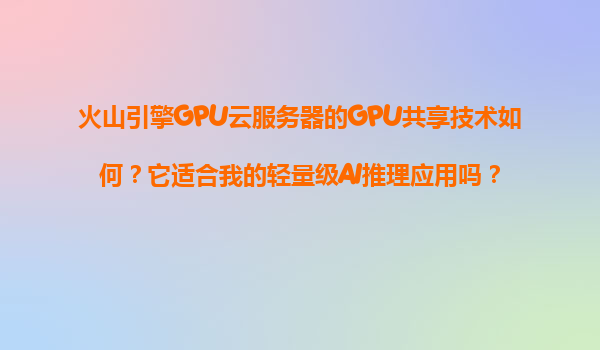 2025-11-08火山引擎GPU云服務器的GPU共享技術解析 1.GPU共享技術是什么? GPU共享技術是一種將單塊物理GPU的計算資源智能分配給多個用戶或任務的技術。不同于傳統(tǒng)GPU獨占模式,共享模式下多個輕量級應...