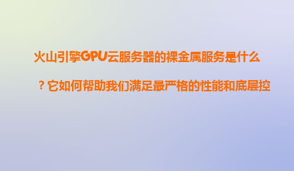 2025-11-08火山引擎GPU云服務器裸金屬服務解析:極致性能與底層控制的終極解決方案 一、什么是火山引擎GPU云服務器的裸金屬服務? 火山引擎GPU云服務器裸金屬服務是一種基于物理服務器(而非虛擬化環(huán)境)提供的云計算...