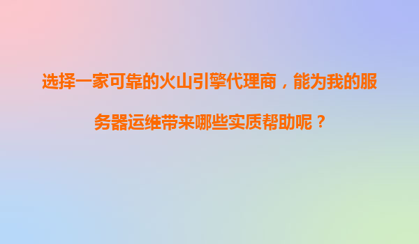 2025-11-06選擇一家可靠的火山引擎代理商,能為我的服務(wù)器運(yùn)維帶來(lái)哪些實(shí)質(zhì)幫助? 一、火山引擎的核心優(yōu)勢(shì)解析 作為字節(jié)跳動(dòng)旗下的云計(jì)算服務(wù)品牌,火山引擎具備以下關(guān)鍵技術(shù)優(yōu)勢(shì): 全球分布式基礎(chǔ)設(shè)施:覆蓋亞太...