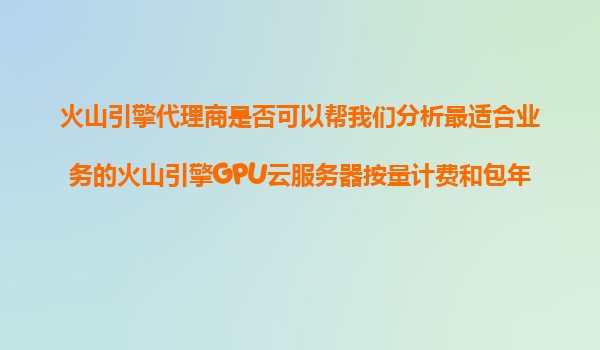 4008-020-360 火山引擎代理商如何助力企業(yè)選擇最優(yōu)GPU云服務(wù)器計(jì)費(fèi)模式 在數(shù)字化浪潮中,GPU云服務(wù)器已成為AI訓(xùn)練、高性能計(jì)算等業(yè)務(wù)的核心基礎(chǔ)設(shè)施。火山引擎作為字節(jié)跳動(dòng)旗下的云服務(wù)平臺(tái),提供多樣化的GPU云服務(wù)器資源。...