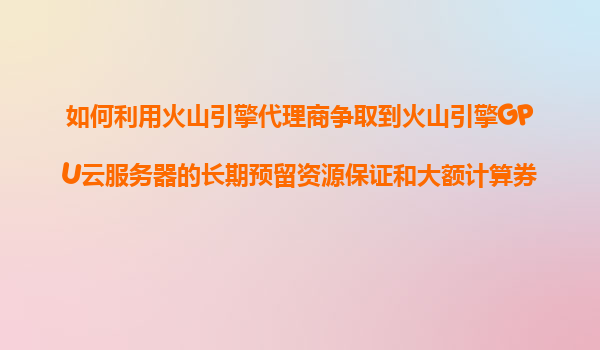 2025-11-07如何利用火山引擎代理商獲取火山引擎GPU云服務(wù)器的專(zhuān)屬技術(shù)支持和AI運(yùn)維監(jiān)控設(shè)置服務(wù) 引言:火山引擎GPU云服務(wù)器的核心優(yōu)勢(shì) 火山引擎作為字節(jié)跳動(dòng)旗下的云服務(wù)平臺(tái),在AI基礎(chǔ)設(shè)施領(lǐng)域具備獨(dú)特的競(jìng)爭(zhēng)優(yōu)勢(shì)。其GPU云服...